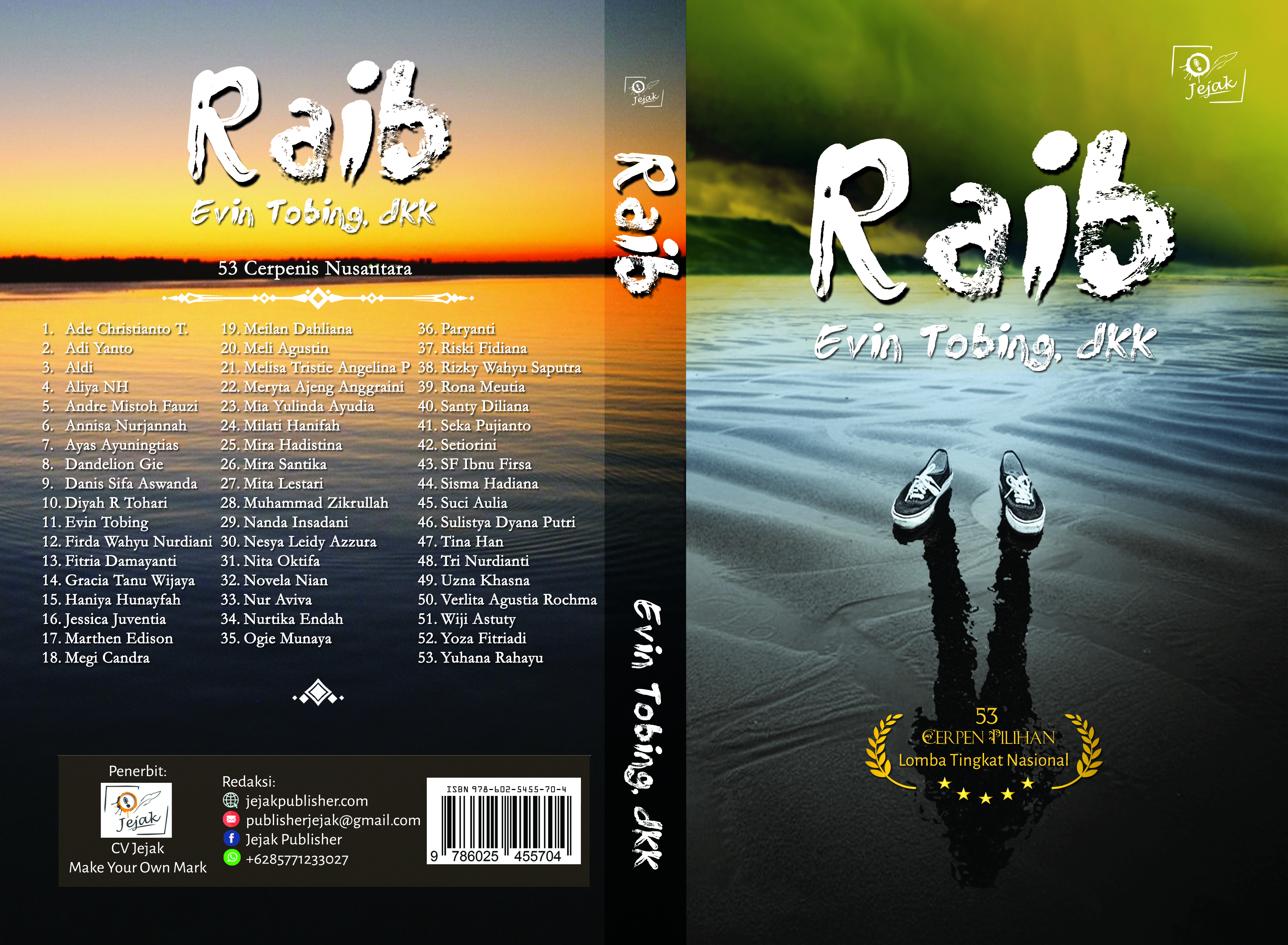 Buku ini adalah kumpulan cerpen terpilih dari lomba cipta cerpen tingkat nasional bertema “Raib”. Berisi 53 cerpen pilihan dari ratusan naskah cerpen, adapun para penulisnya adalah sebagai berikut: