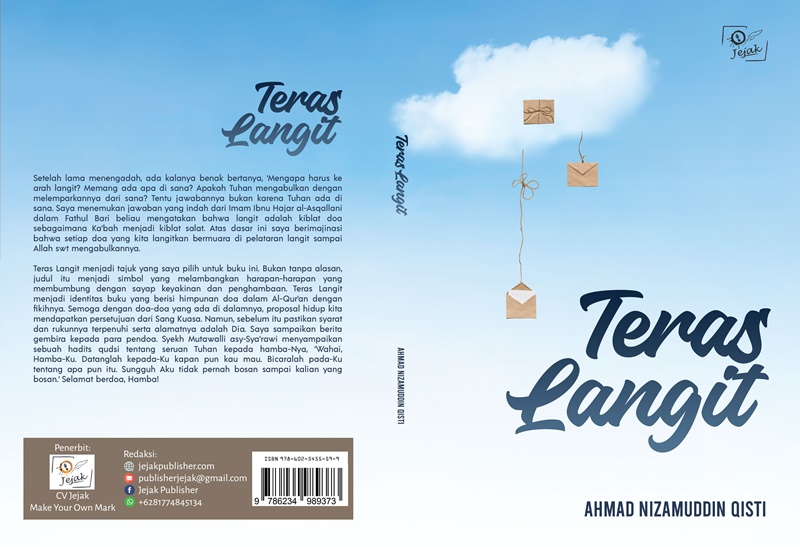 Teras Langit menjadi tajuk yang saya pilih untuk buku ini. Bukan tanpa alasan, judul itu menjadi simbol yang melambangkan harapan-harapan yang membumbung dengan sayap keyakinan dan penghambaan. Teras Langit menjadi identitas buku yang berisi himpunan doa dalam Al-Qur’an dengan fikihnya. Semoga dengan doa-doa yang ada di dalamnya, proposal hidup kita mendapatkan persetujuan dari Sang Kuasa. Namun, sebelum itu pastikan syarat dan rukunnya terpenuhi serta alamatnya adalah Dia. Saya sampaikan berita gembira kepada para pendoa. Syekh Mutawalli asy-Sya’rawi menyampaikan sebuah hadits qudsi tentang seruan Tuhan kepada hamba-Nya, ‘Wahai, Hamba-Ku. Datanglah kepada-Ku kapan pun kau mau. Bicaralah pada-Ku tentang apa pun itu. Sungguh Aku tidak pernah bosan sampai kalian yang bosan.’ Selamat berdoa, Hamba!