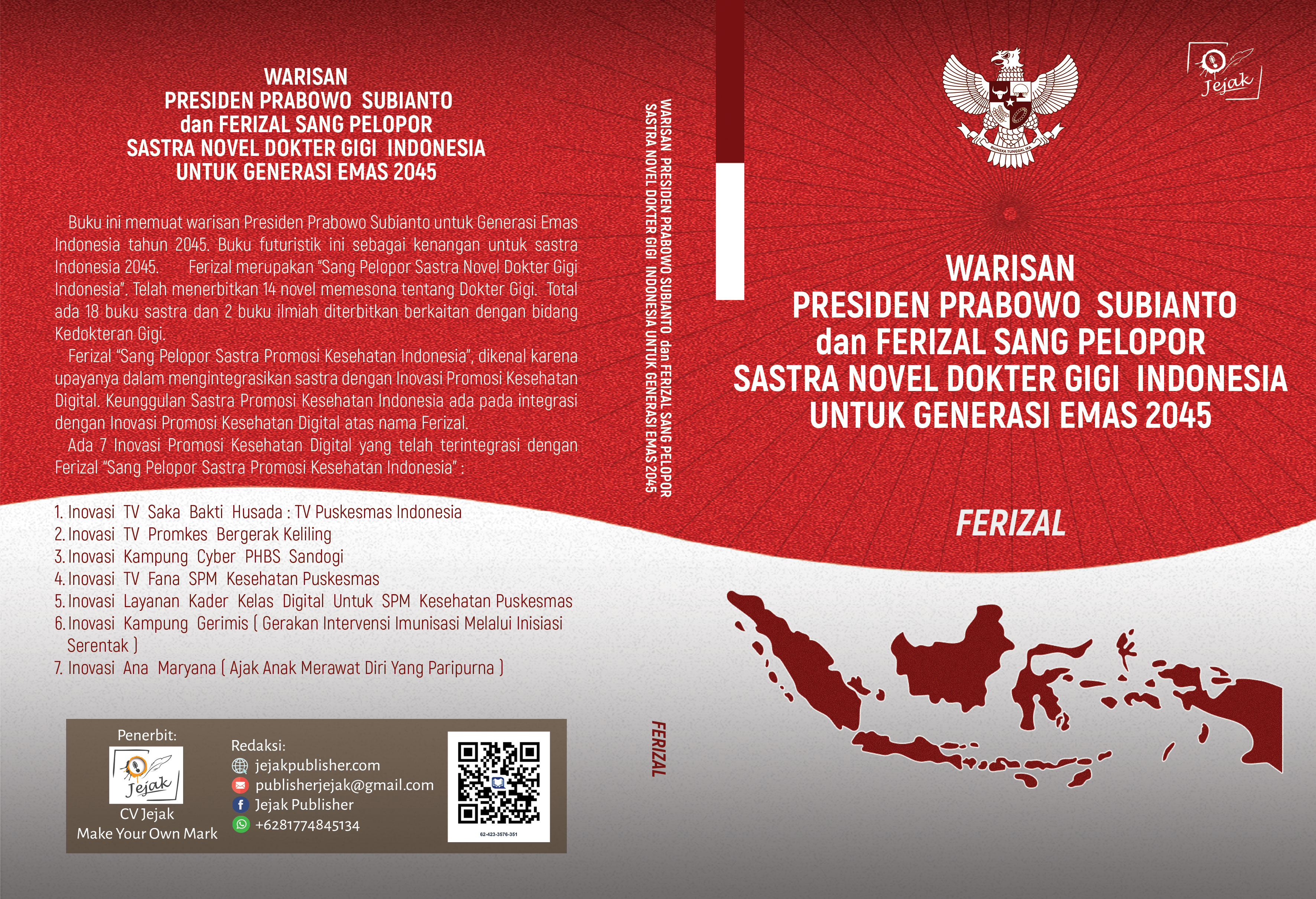 Buku ini memuat warisan Presiden Prabowo Subianto untuk Generasi Emas Indonesia tahun 2045. Buku futuristik ini sebagai kenangan untuk sastra Indonesia 2045. Ferizal merupakan “Sang Pelopor Sastra Novel Dokter Gigi Indonesia”. Telah menerbitkan 14 novel memesona tentang Dokter Gigi. Total ada 18 buku sastra dan 2 buku ilmiah diterbitkan berkaitan dengan bidang Kedokteran Gigi.